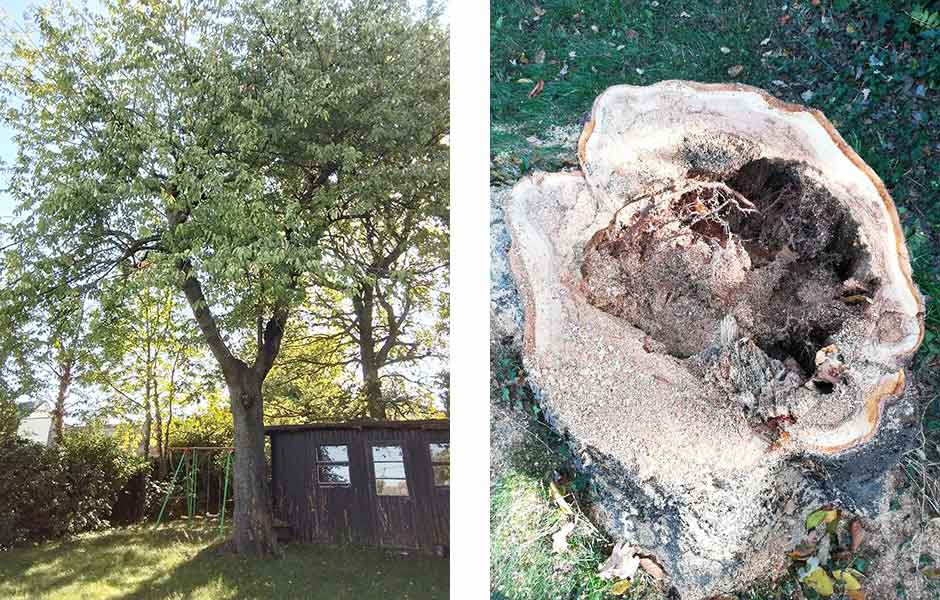 Un arbre peut paraitre sain, tout en présentant des dégradations internes importantes. Une branche ou un tronc aux fibres dégradées peuvent causer des accidents graves.